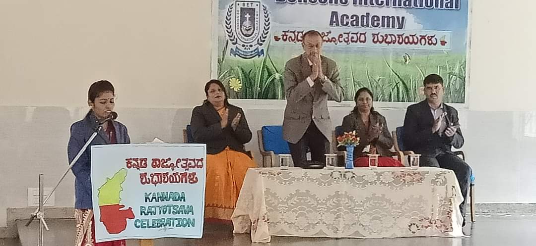 Day to Proclaim the Heritage and Pride of Karnataka. Bensons International Academy, Benkanhalli, Belagavi, celebrated 64th Karnataka Rajyotsava celebration which was held on 1st November 2019 at school campus. The Staff and students assembled on the ground at 8.am. The function commenced with the hoisting of the state flag, singing of the State anthem and national anthem. Students from various grades spoke regarding the rich heritage of Karnataka and the importance of celebrating Rajyotsava.
